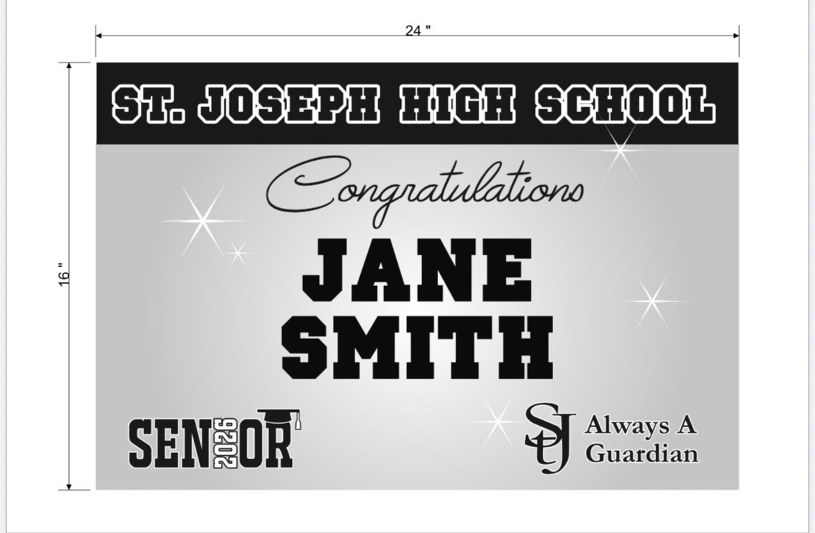 The 2026 Graduation Committee is offering graduation lawn signs for purchase. Lawns signs are a nice way to acknowledge your graduate during this special time! Signs display writing on one side only and come with a metal stake for setting in the ground. Signs cost: